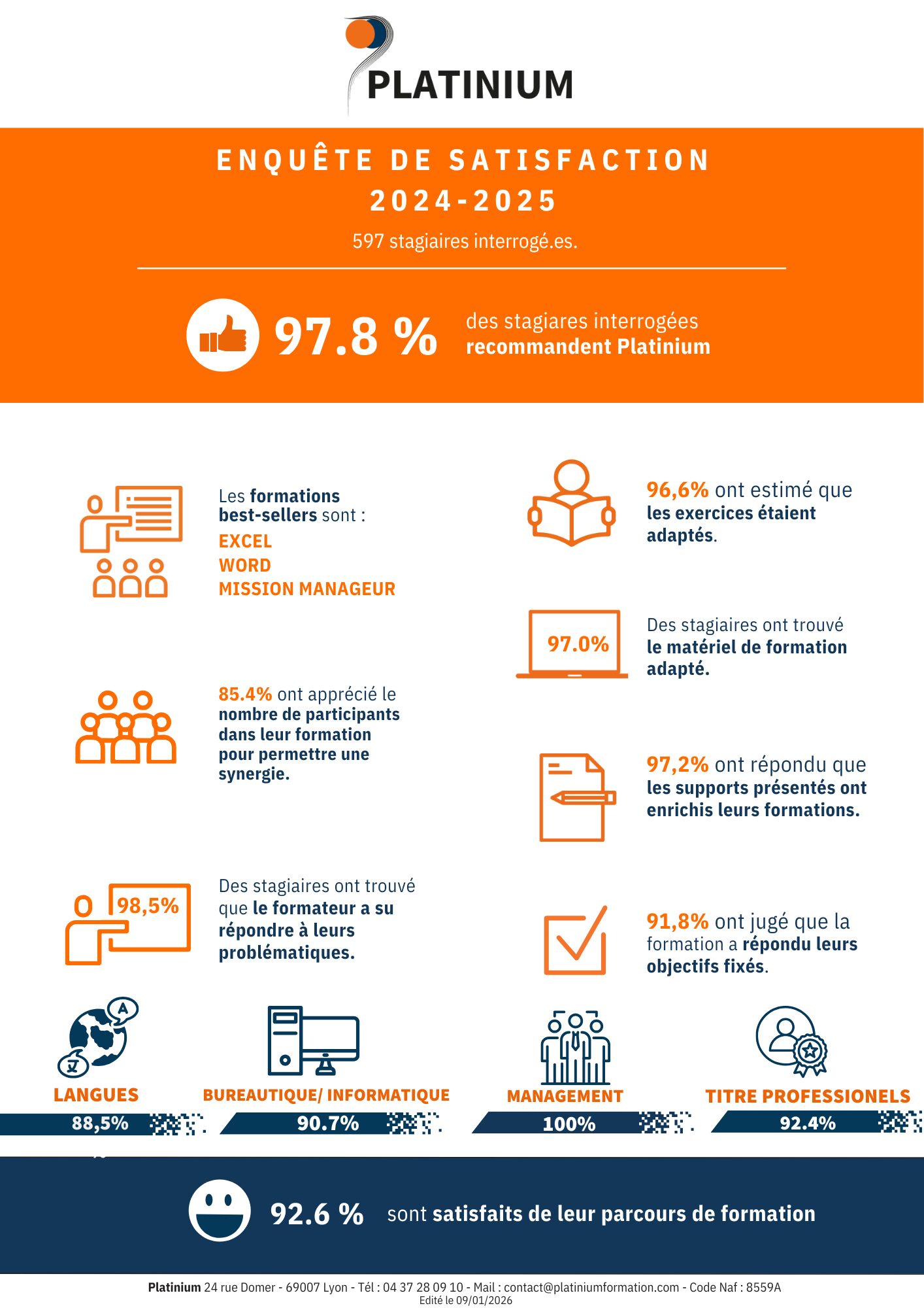 Sachez que 97,8 % de nos stagiaires recommandent Platinium !